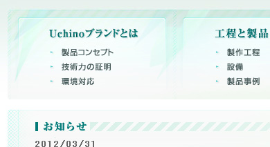 グローバルメニューは「Uchinoブランドとは」から始まります